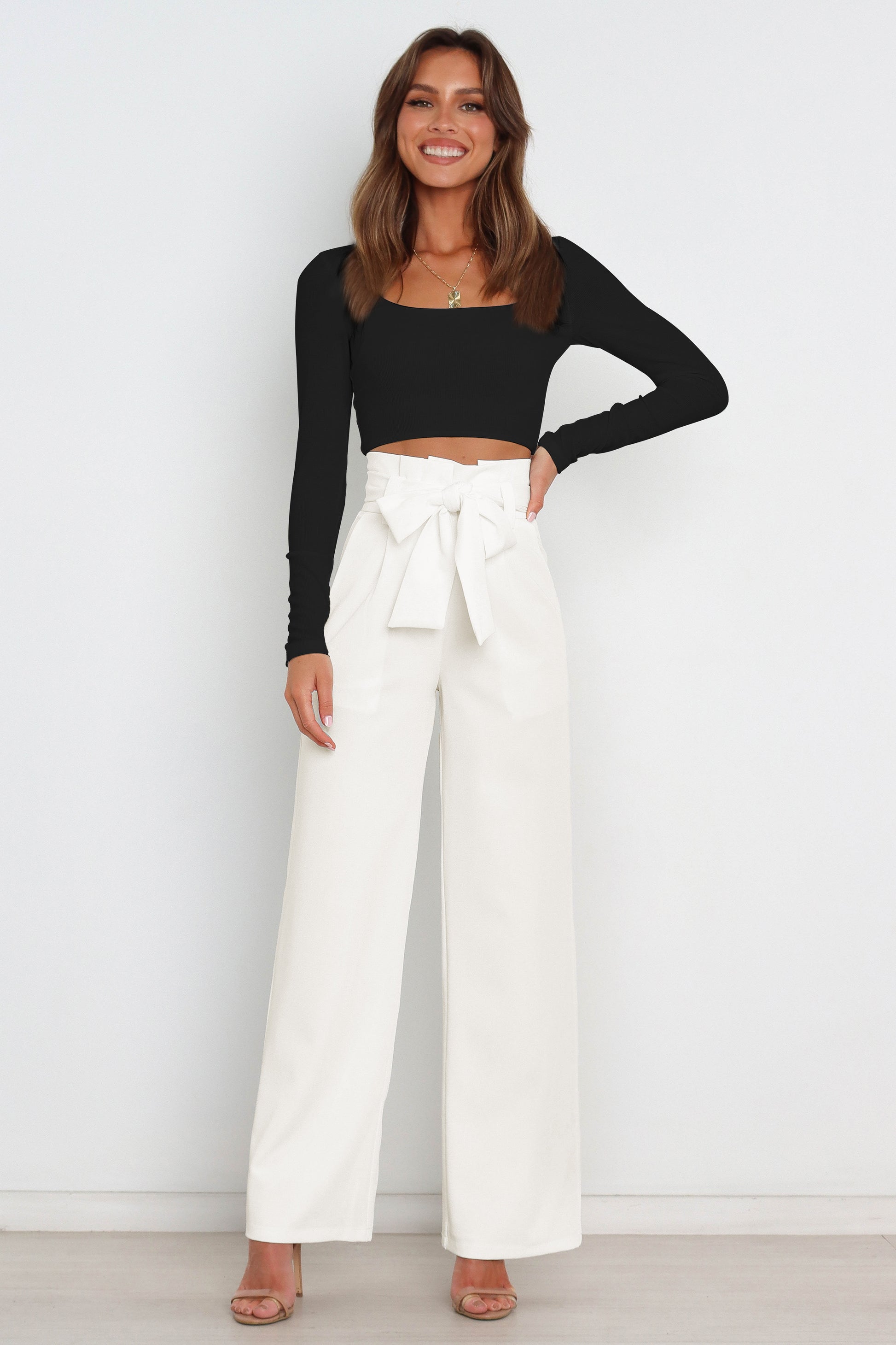 Tie Front Paperbag Wide Leg Pants